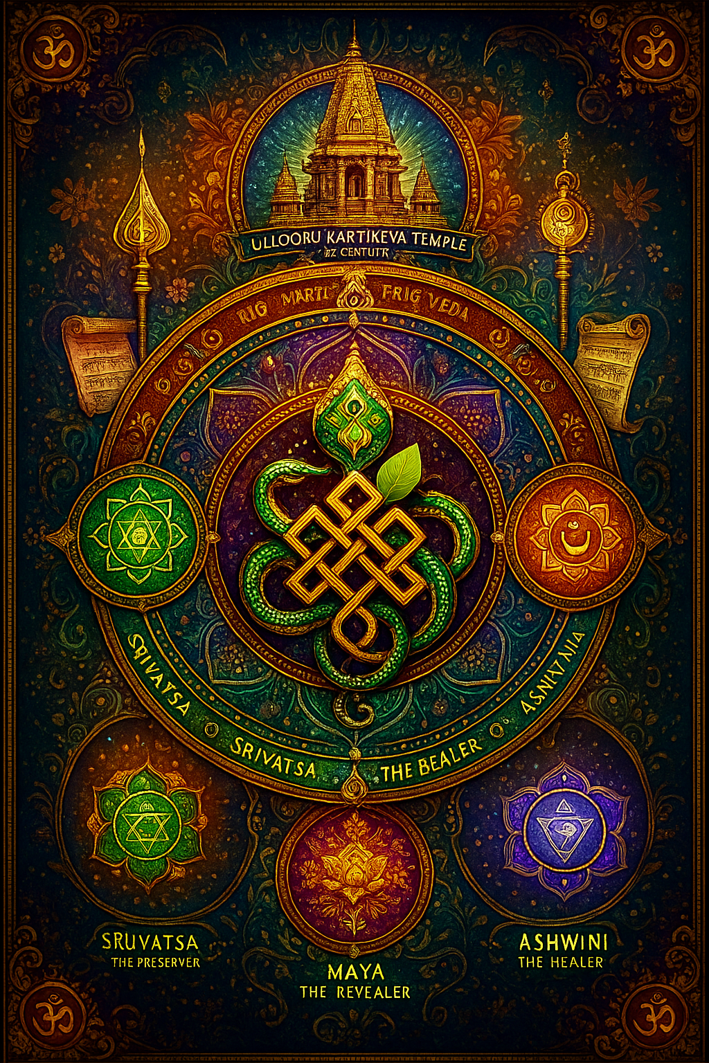 This is the reawakening of the Nāga–Tulsi covenant — a reunion of masculine consciousness (Vishnu/Srivatsa) and feminine healing (Lakshmi/Ashwini) under the guidance of Maya, the creative intelligence bridging worlds.